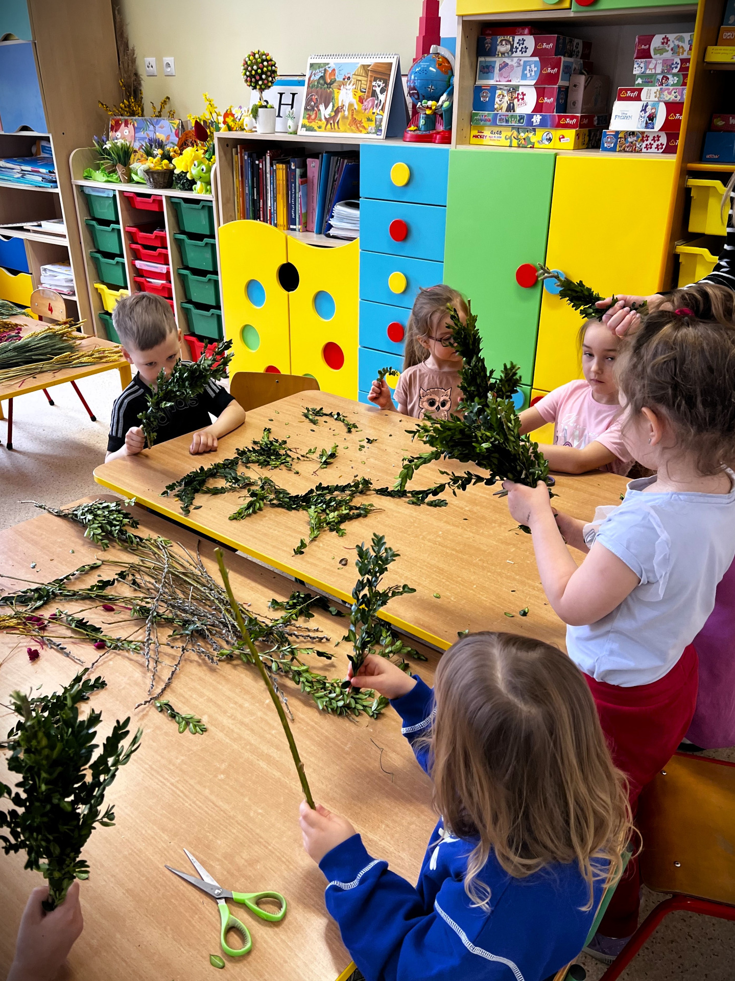 W dniu 8 kwietnia 2025 roku w Przedszkolu Gminnym w Gwiazdowie filia Boleszewie odbyły się warsztaty robienia palm wielkanocnych.