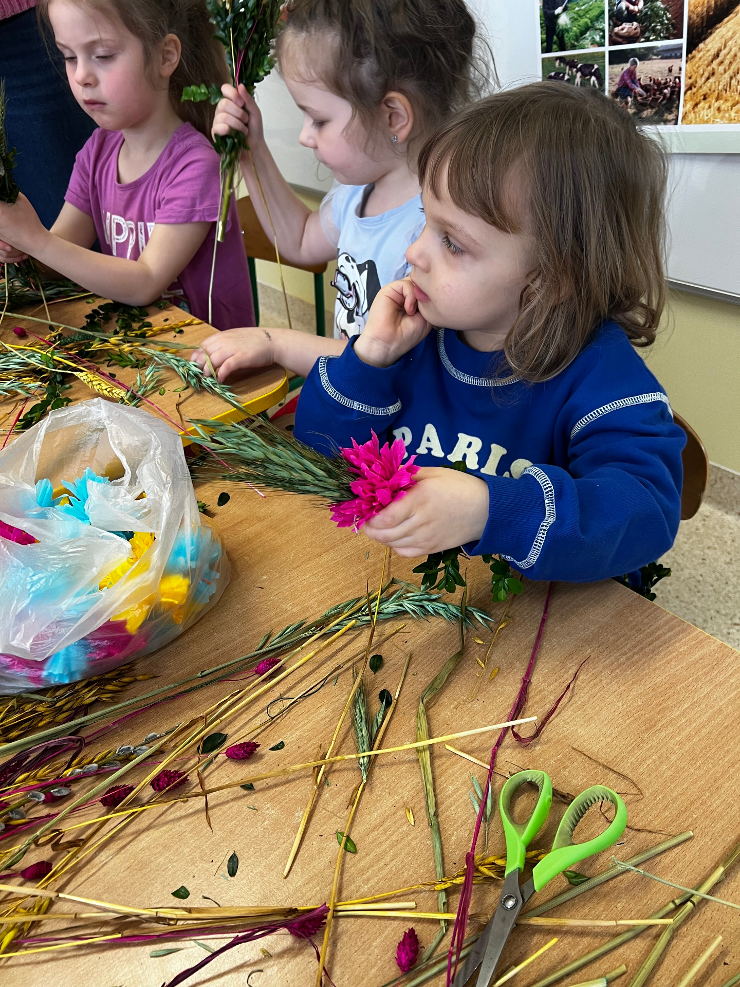 Celem warsztatów było przybliżenie dzieciom tradycji związanych z Niedzielą Palmową oraz rozwijanie zdolności manualnych i kreatywności. Atmosfera podczas warsztatów była bardzo radosna i twórcza.