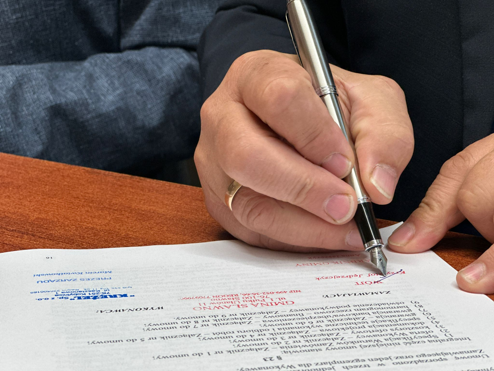 W poniedziałek, 29 września Wójt Krzysztof Jędrzejczyk przy kontrasygnacie Skarbnik Gminy Anny Jaszczyk i w obecności Sołtys Brześcia Agnieszki Jędrzejczyk podpisał umowę ze Spółką "Krężel" z Kobylnicy, reprezentowaną przez Prezesa Marcina Kwiatkowskiego na przebudowę drogi gminnej nr 170047Z w Brześciu.