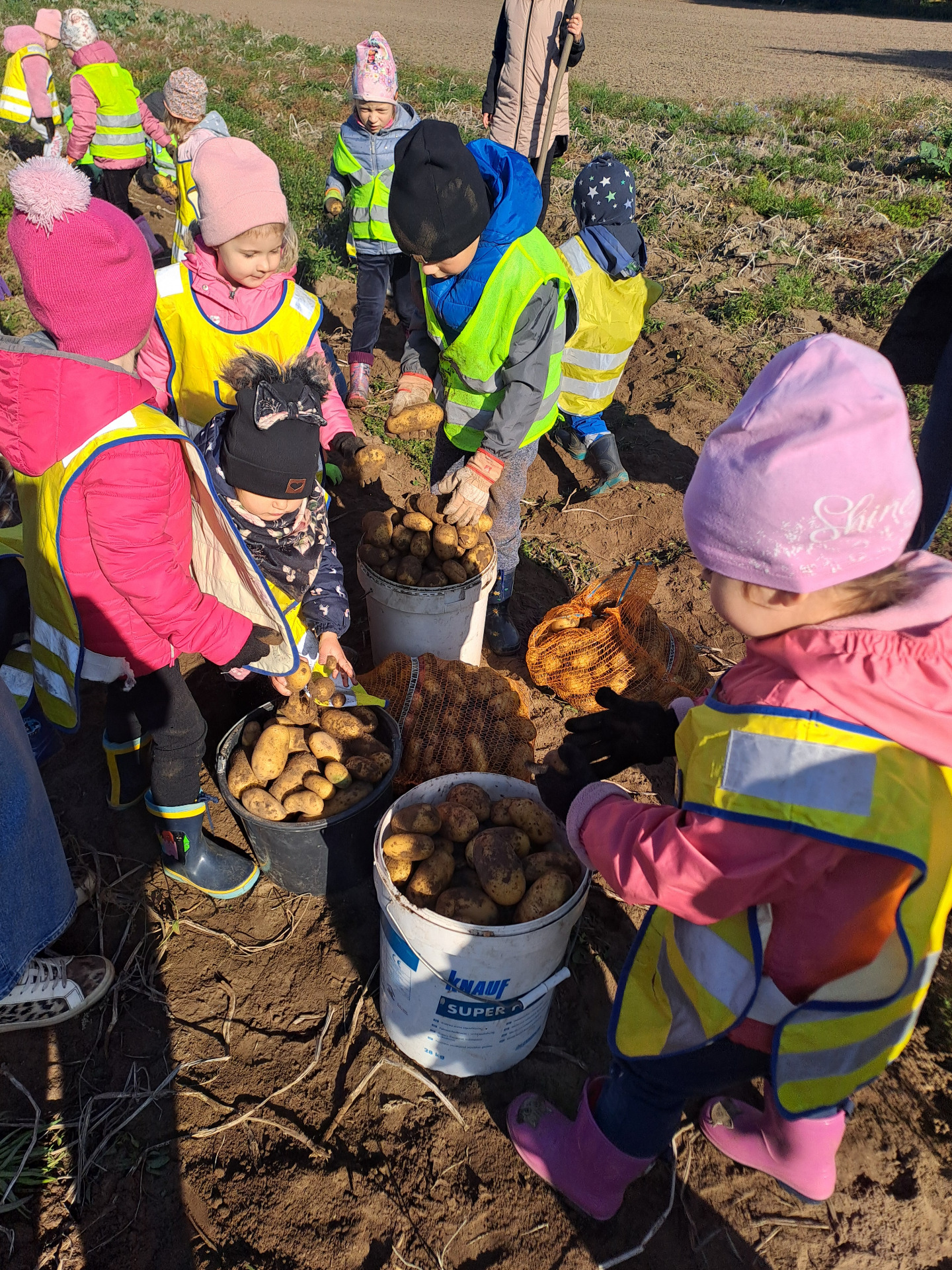 3 października dzieci z Przedszkola Gminnego w Gwiazdowie filii w Sławsku wyposażone w wiaderka i kalosze, wybrały się na wykopki do Państwa Stępniak. Dzieci miały okazję poznać pracę rolnika oraz sprzęt, którym się posługuje podczas jesiennych zbiorów. Jednak największą atrakcją było zbieranie ziemniaków. Przedszkolaki wytrwale napełniały wiaderka. Udało nam się zebrać 10 worków ziemniaków. Brudne rączki naszych przedszkolaków, uśmiechnięte i wesołe buzie były najlepszym dowodem, że nie była to tylko ciężka praca, ale także świetna zabawa. Szczególne podziękowania należą się Państwu Stępniak za zorganizowanie tego fantastycznego dnia.