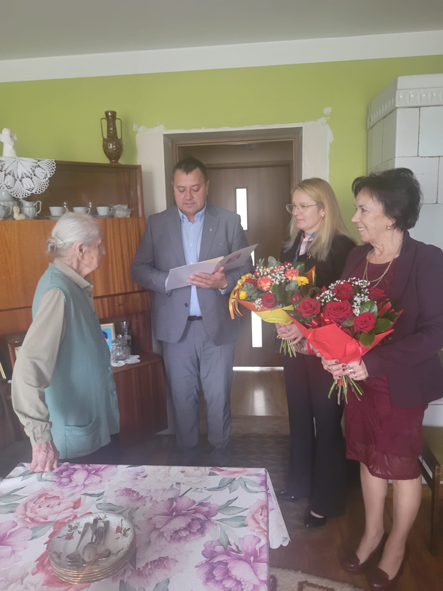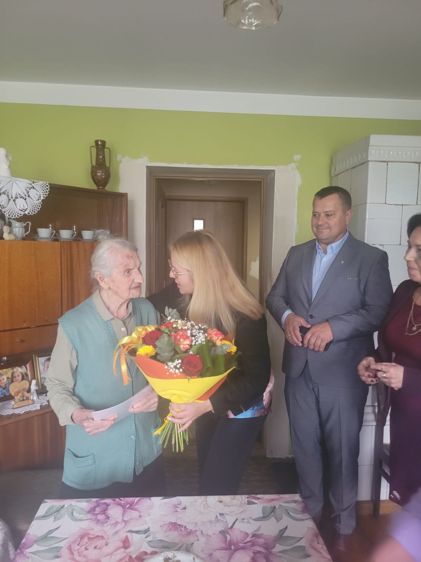 Pani Janina Myziak z Janiewic obchodziła niedawno 102 urodziny. Z tej wyjątkowej okazji z życzeniami od wszystkich mieszkańców Jubilatkę odwiedził Wójt Krzysztof Jędrzejczyk wraz z Przewodniczącą Rady Gminy Martą Hołowatą oraz Sołtys Janiewic Anną Rabendą.