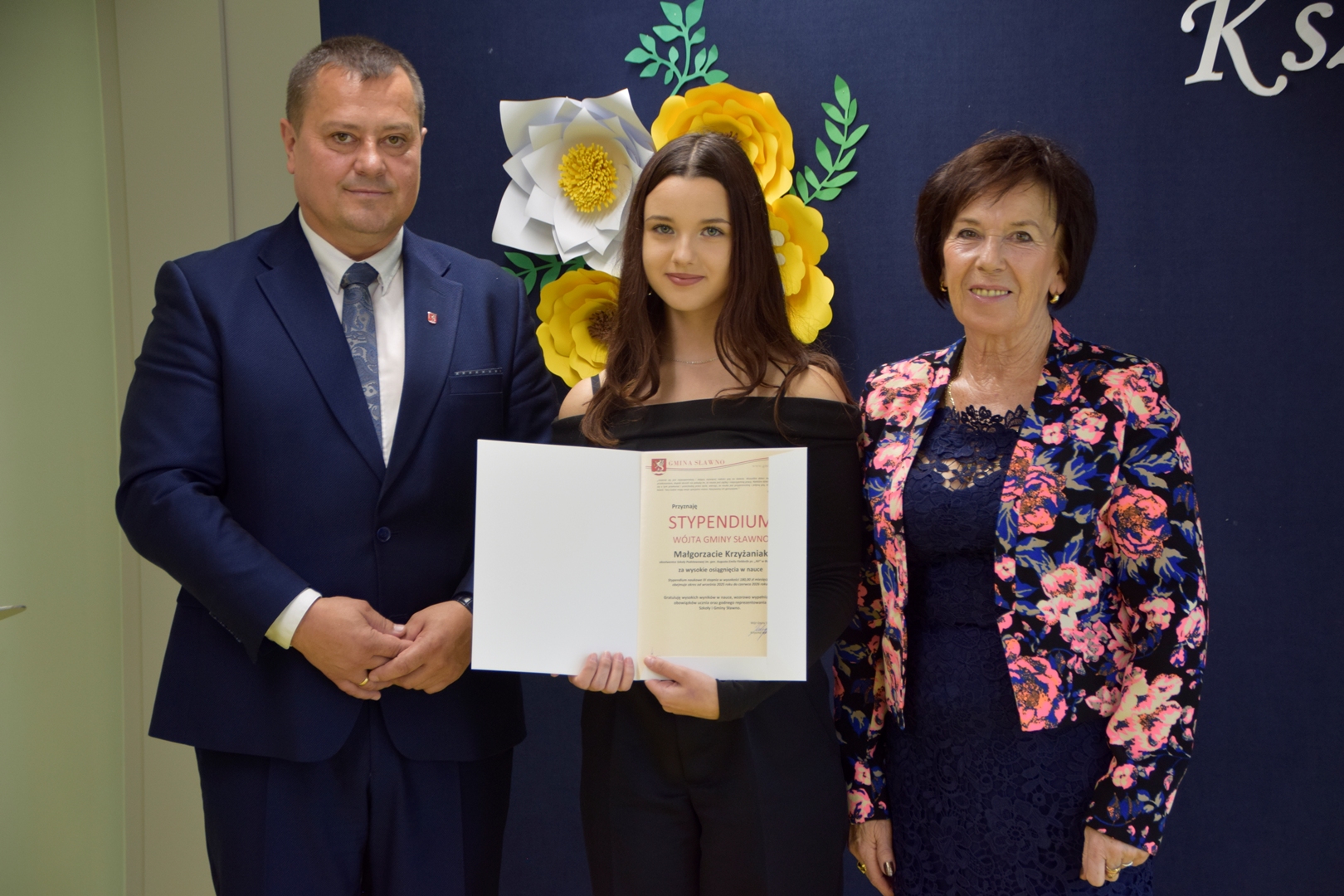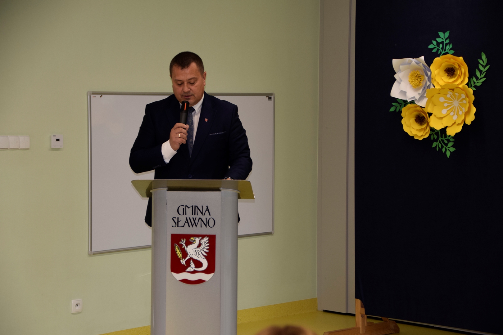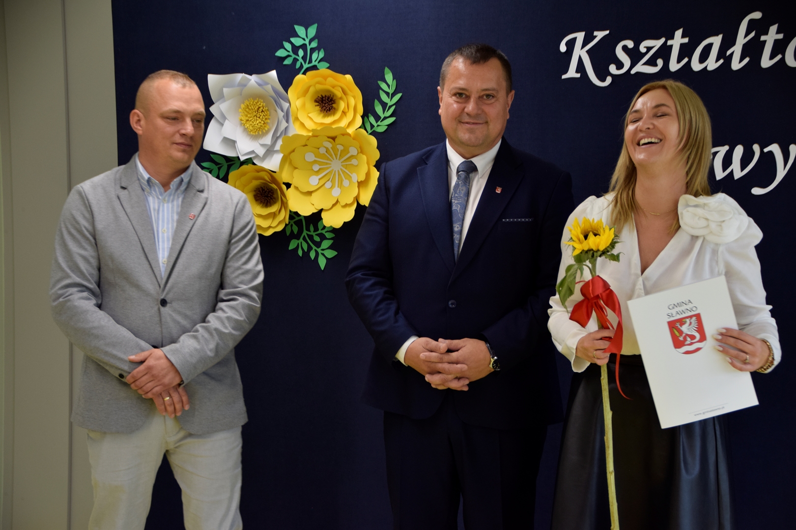 Dnia 8 października 2025 r. w Przedszkolu Gminnym w Bobrowicach odbyły się gminne obchody Dnia Edukacji Narodowej. Wójt Krzysztof Jędrzejczyk, wspólnie z Przewodniczącą Rady Gminy Martą Hołowatą, Przewodniczącym Komisji Oświaty, Kultury, Zdrowia i Polityki Społecznej Przemysławem Walem oraz Kierownik Referatu Oświaty Agnieszką Gniewczyńską wręczyli Stypendia Wójta Gminy Sławno najlepszym uczniom i absolwentom naszej gminy.