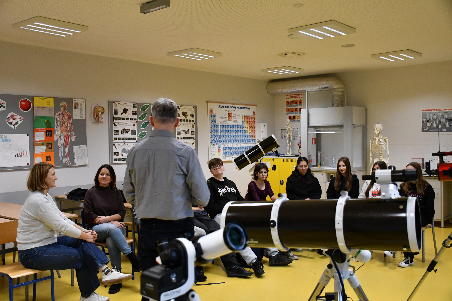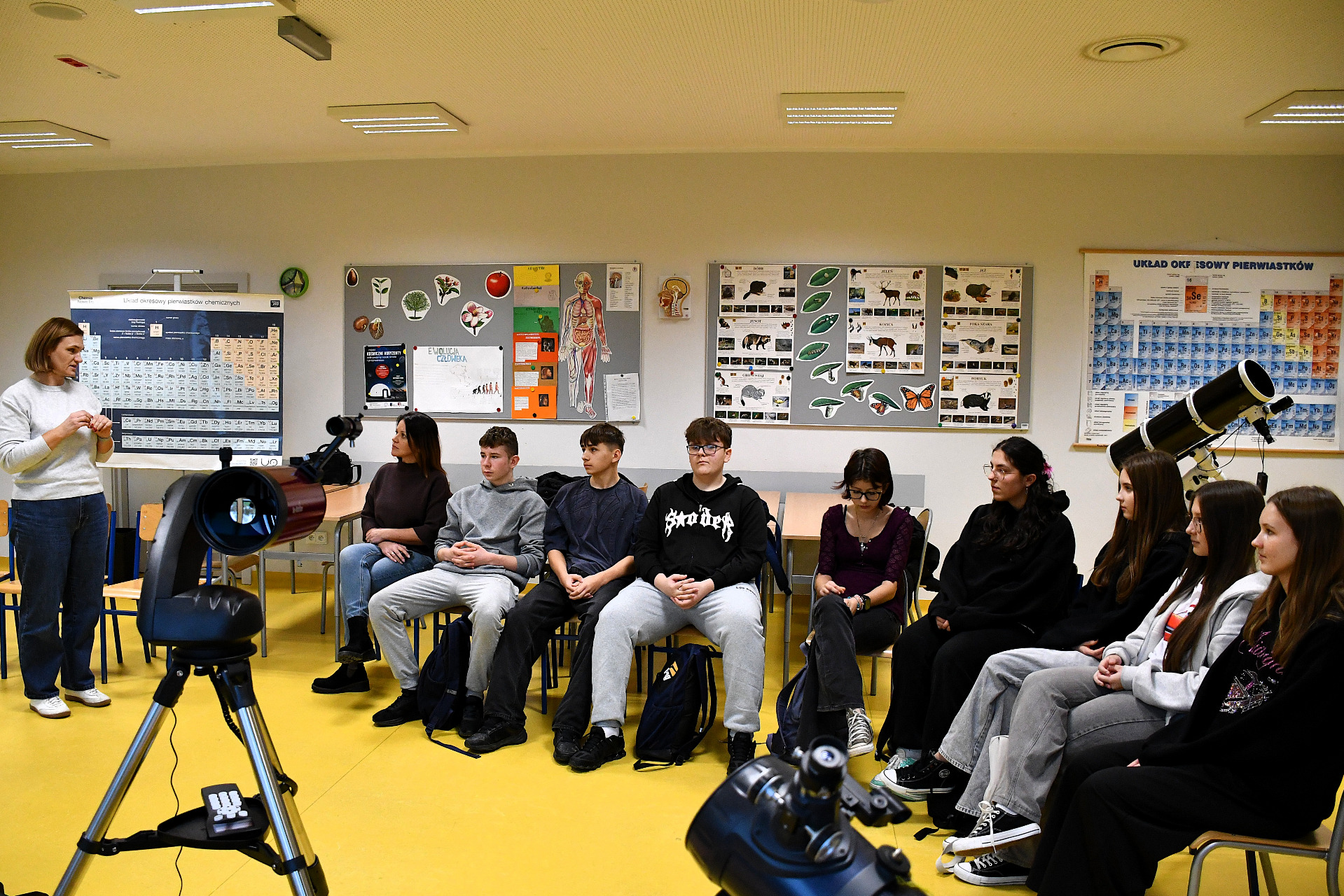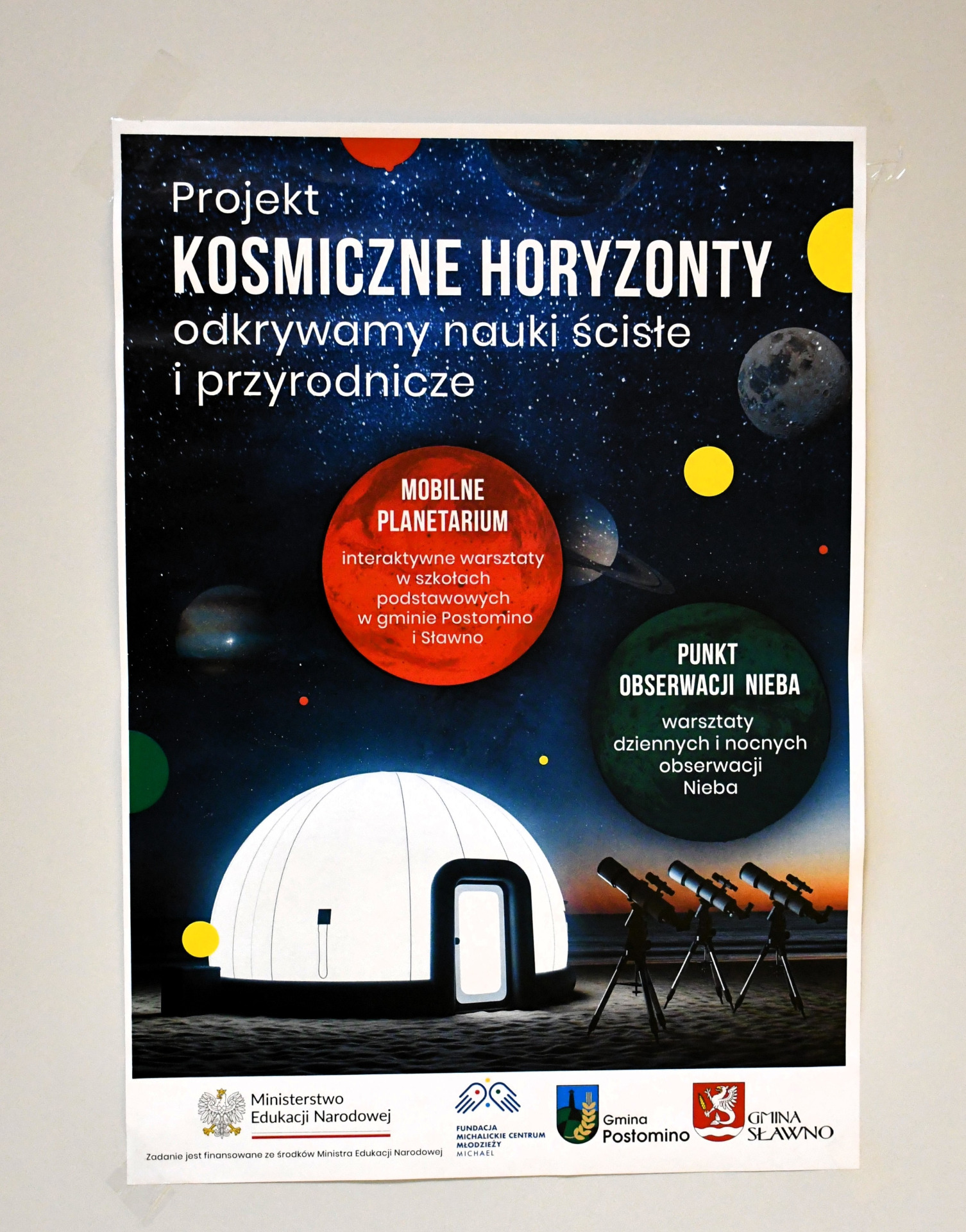 W ramach drugiego cyklu zajęć uczniowie z klas VII i VIII ze szkół podstawowych Gminy Sławno uczestniczący w projekcie edukacyjnym pt. "Kosmiczne horyzonty: odkrywamy nauki ścisłe i przyrodnicze" brali udział w praktycznych warsztatach z dziennych obserwacji nieba.