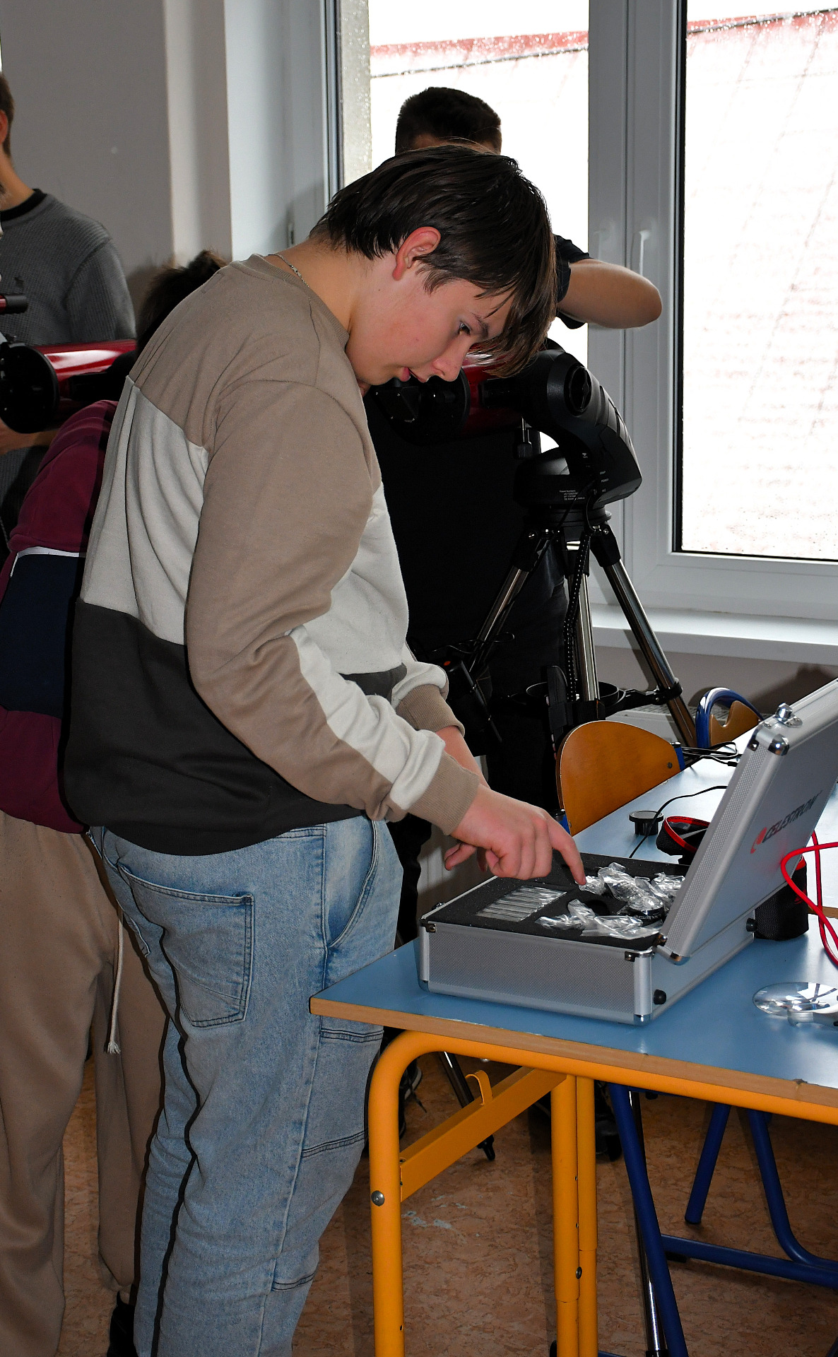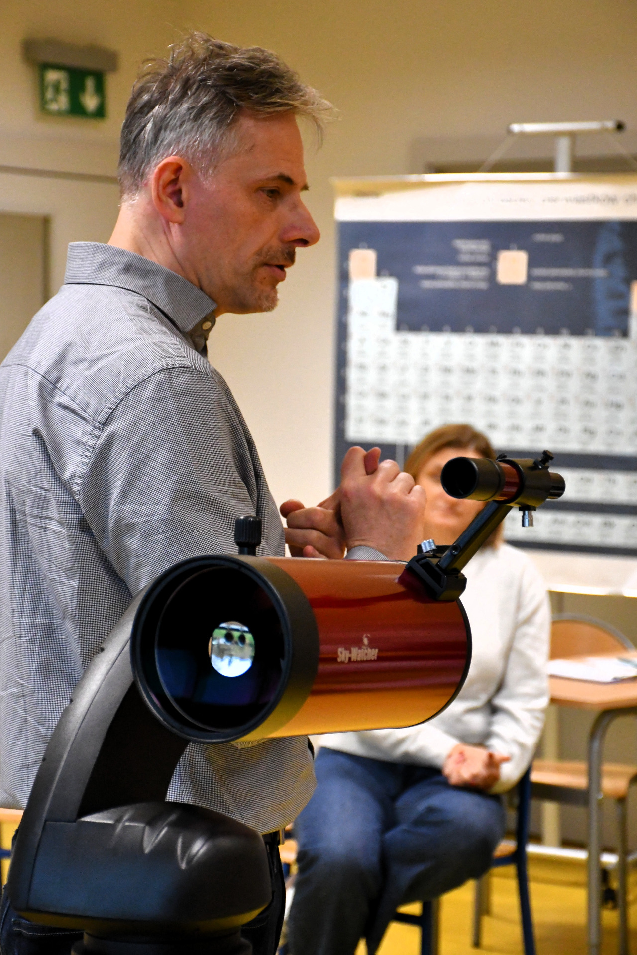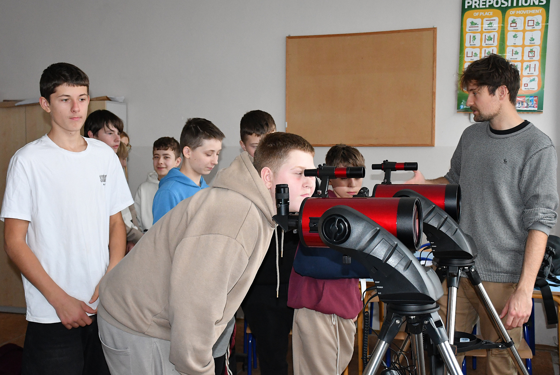 W ramach drugiego cyklu zajęć uczniowie z klas VII i VIII ze szkół podstawowych Gminy Sławno uczestniczący w projekcie edukacyjnym pt. "Kosmiczne horyzonty: odkrywamy nauki ścisłe i przyrodnicze" brali udział w praktycznych warsztatach z dziennych obserwacji nieba.