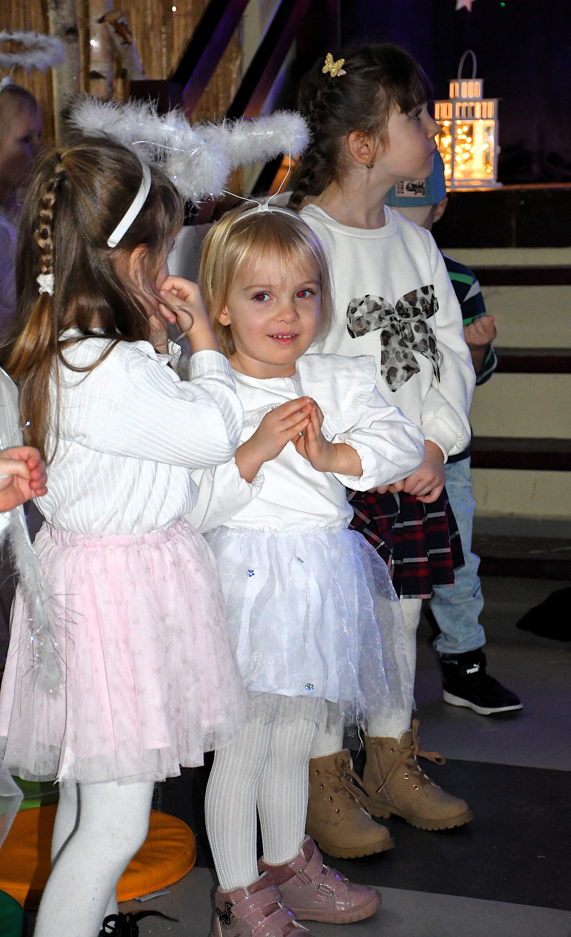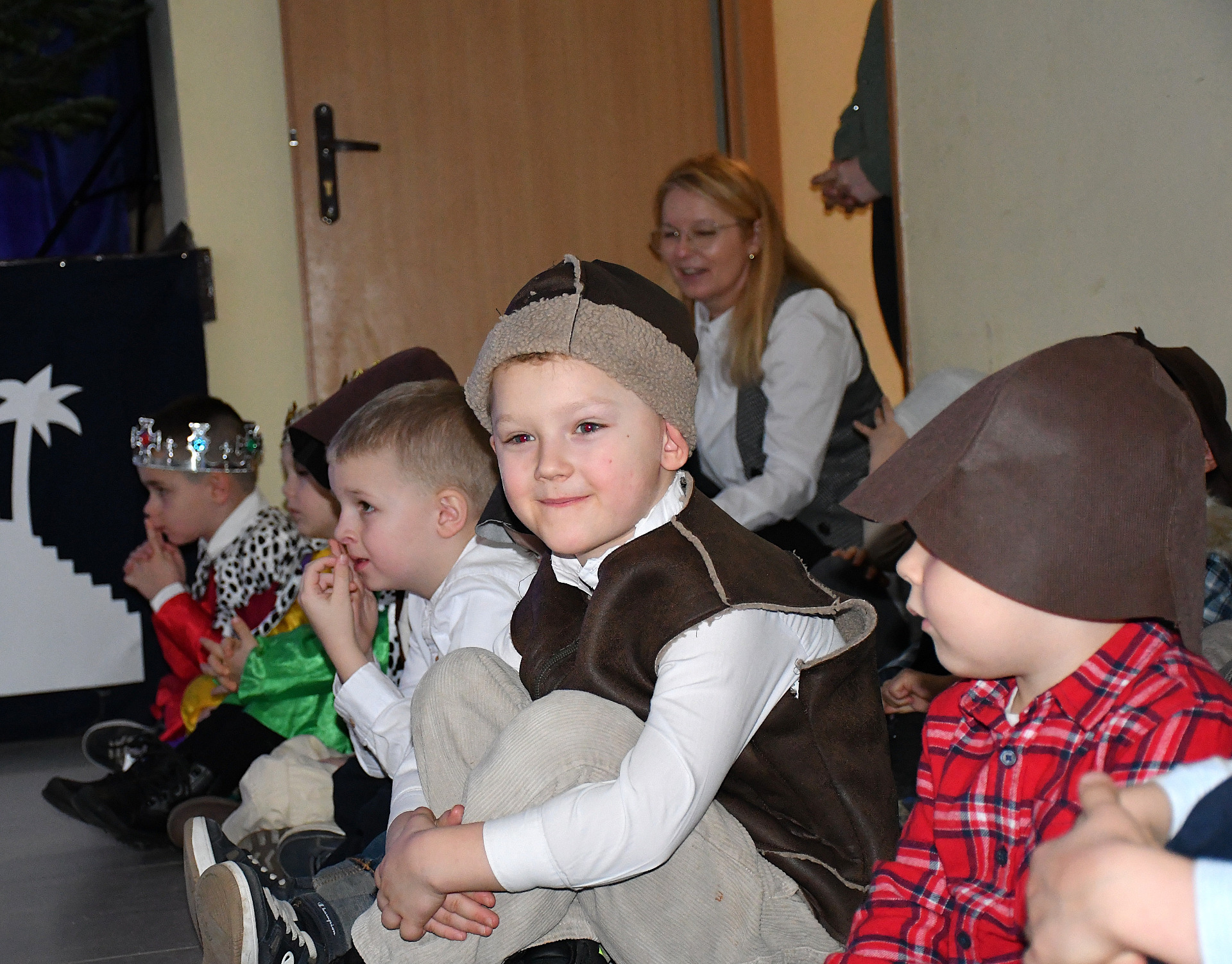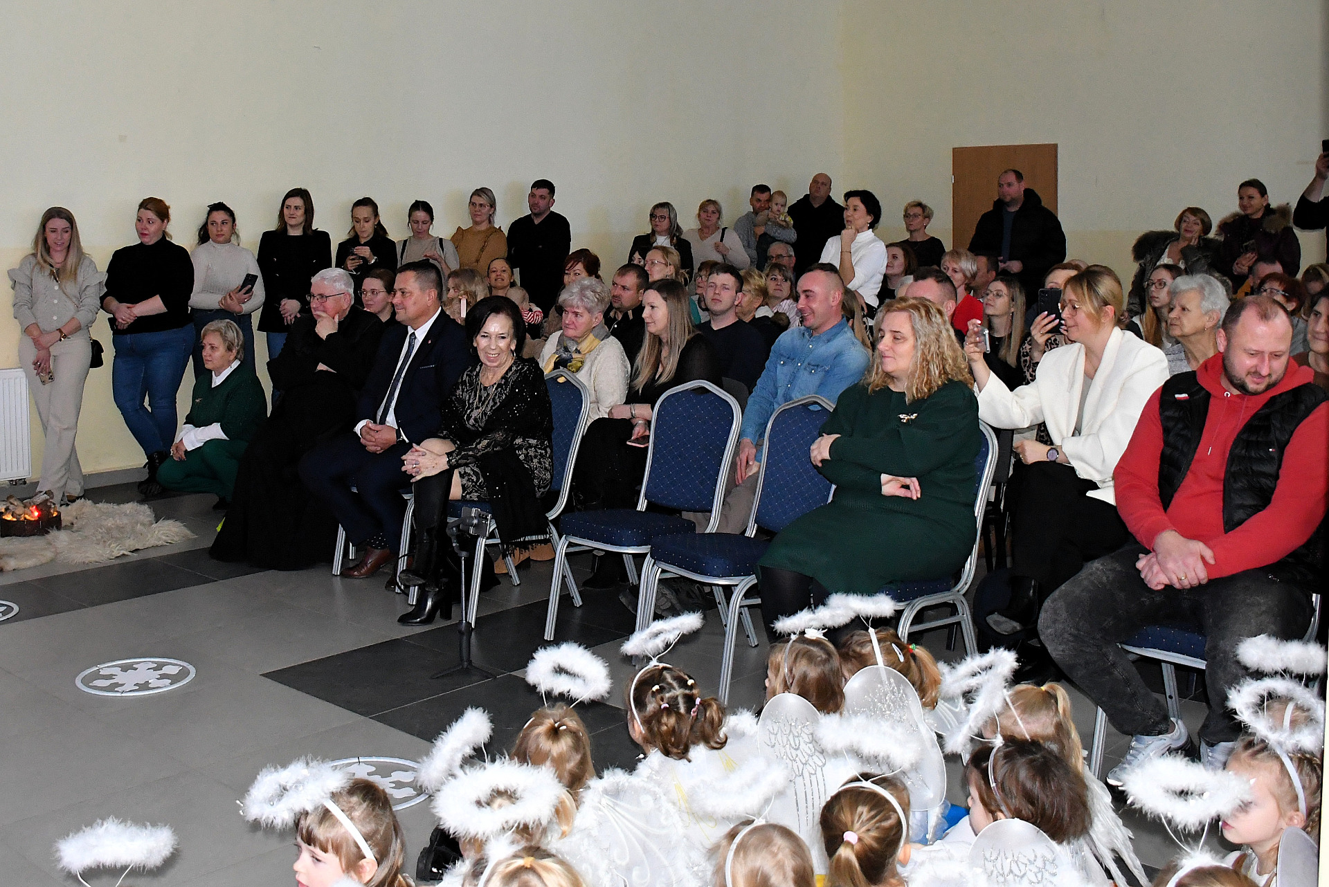 Występ dzieci zachwycił zaproszonych gości – swoją obecnością zaszczycili nas Pan Wójt Gminy Sławno Krzysztof Jędrzejczyk , Pani Przewodnicząca Rady Gminy Marta Hołowata , Ksiądz Andrzej Korpusik proboszcz z Parafii Żukowo, Pani Sołtys Gwiazdowa Grażyna Zakrzewska, rodzice oraz przyjaciele przedszkola. Mali aktorzy z ogromnym zaangażowaniem i radością wcielili się w role aniołów, pasterzy i postaci bożonarodzeniowej historii. Piękne stroje, nastrojowa muzyka, śpiew kolęd i szczere, dziecięce emocje sprawiły, że niejednemu widzowi zakręciła się łza wzruszenia w oku.