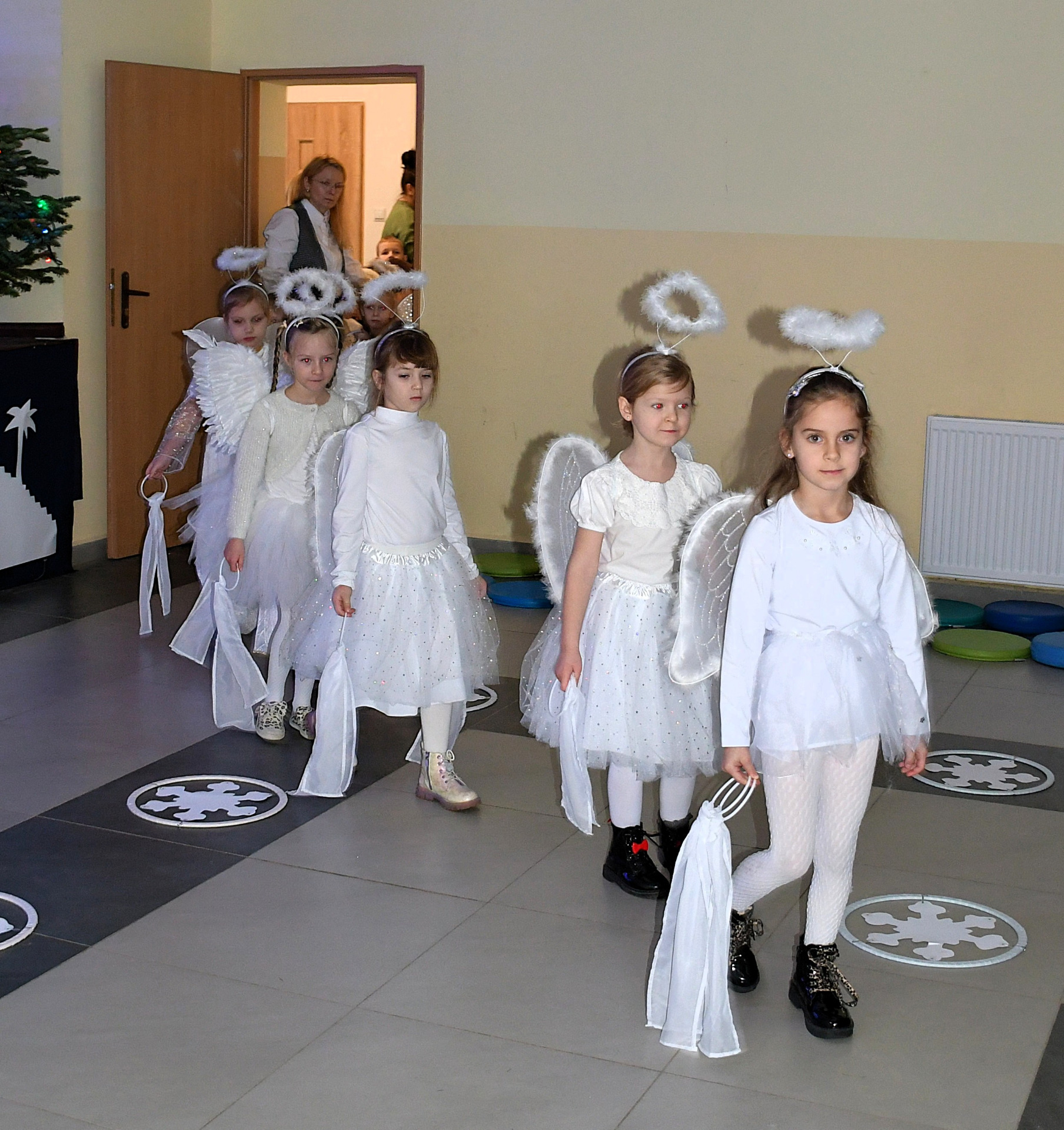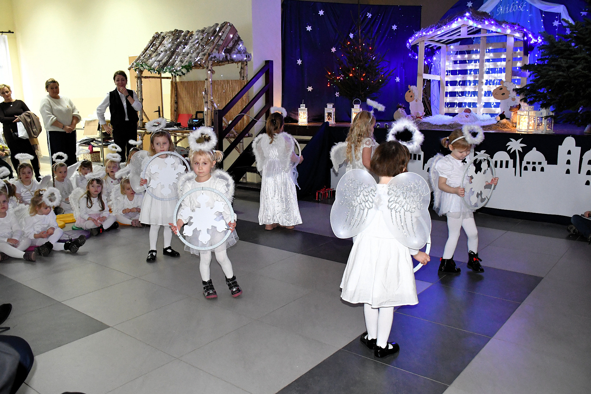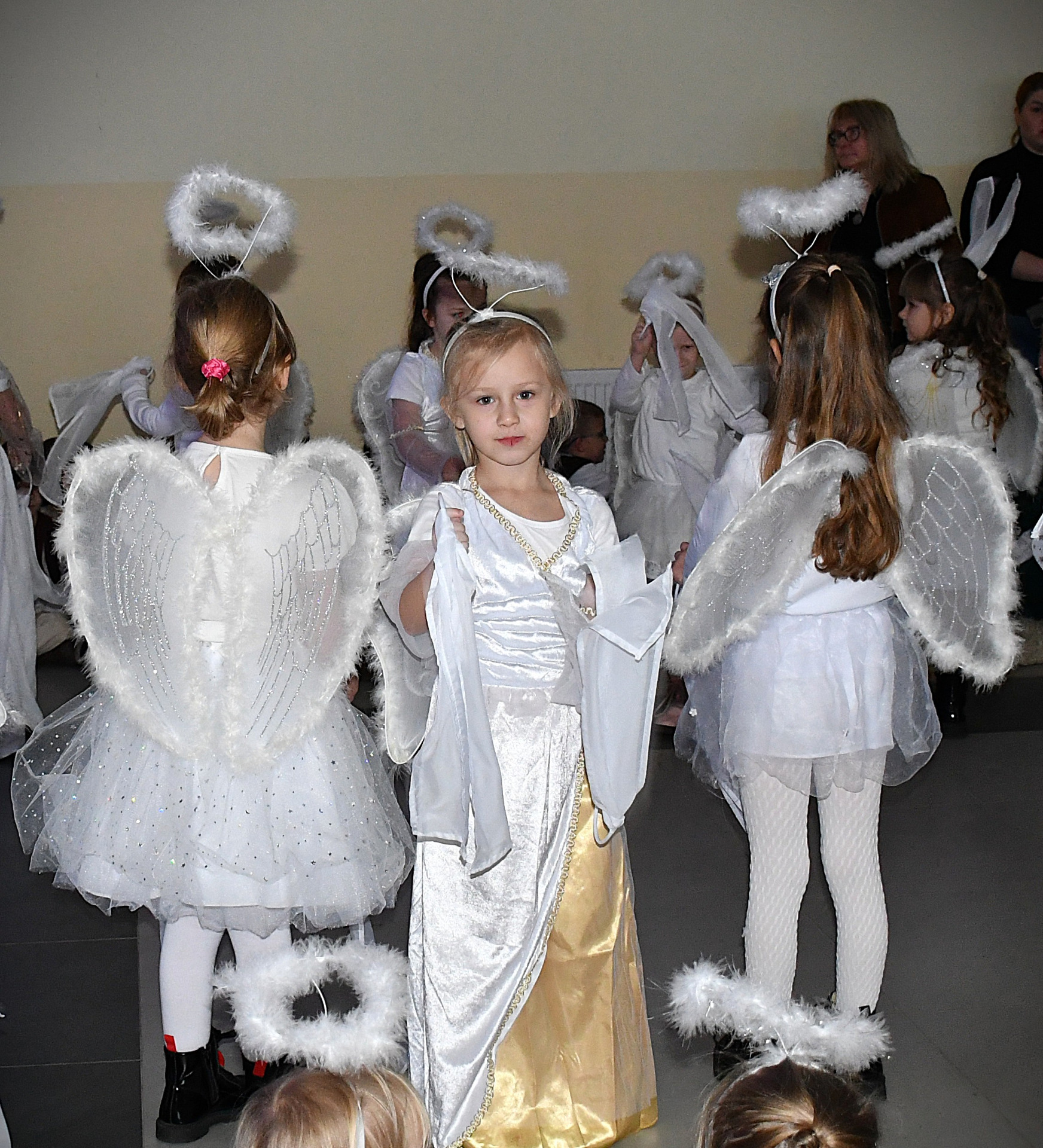 Występ dzieci zachwycił zaproszonych gości – swoją obecnością zaszczycili nas Pan Wójt Gminy Sławno Krzysztof Jędrzejczyk , Pani Przewodnicząca Rady Gminy Marta Hołowata , Ksiądz Andrzej Korpusik proboszcz z Parafii Żukowo, Pani Sołtys Gwiazdowa Grażyna Zakrzewska, rodzice oraz przyjaciele przedszkola. Mali aktorzy z ogromnym zaangażowaniem i radością wcielili się w role aniołów, pasterzy i postaci bożonarodzeniowej historii. Piękne stroje, nastrojowa muzyka, śpiew kolęd i szczere, dziecięce emocje sprawiły, że niejednemu widzowi zakręciła się łza wzruszenia w oku.