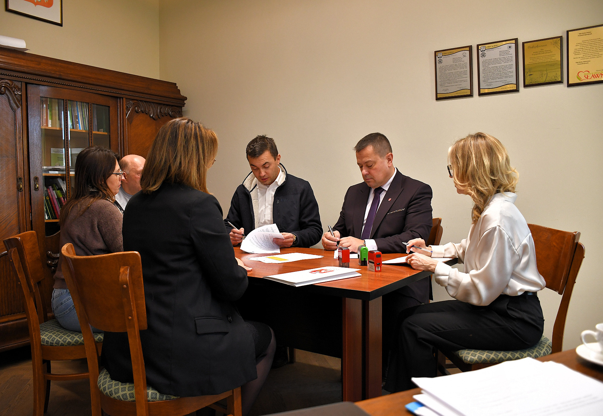 W czwartek 18 grudnia 2025 r. Wójt Krzysztof Jędrzejczyk, przy kontrasygnacie Skarbnika Anny Jaszczyk, w obecności radnej Agnieszki Cherbeć oraz sołtysa Tychowa Leszka Kosa, podpisał umowę z General Engineering Kowal sp. z o. o. ze Szczecina reprezentowaną przez prezesa zarządu Mirosława Pietrusewicza na budowę małej retencji leśnej w miejscowości Tychowo.