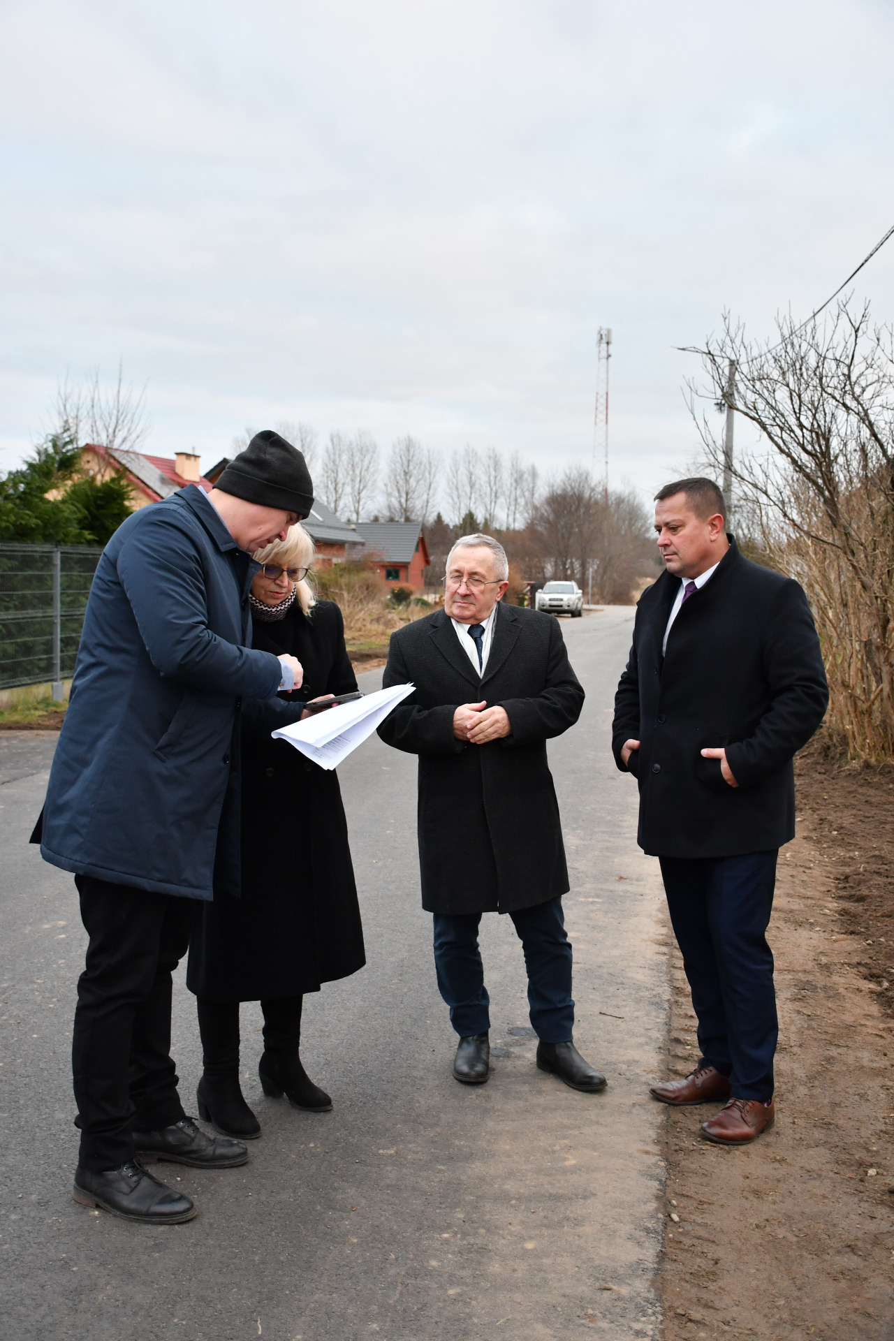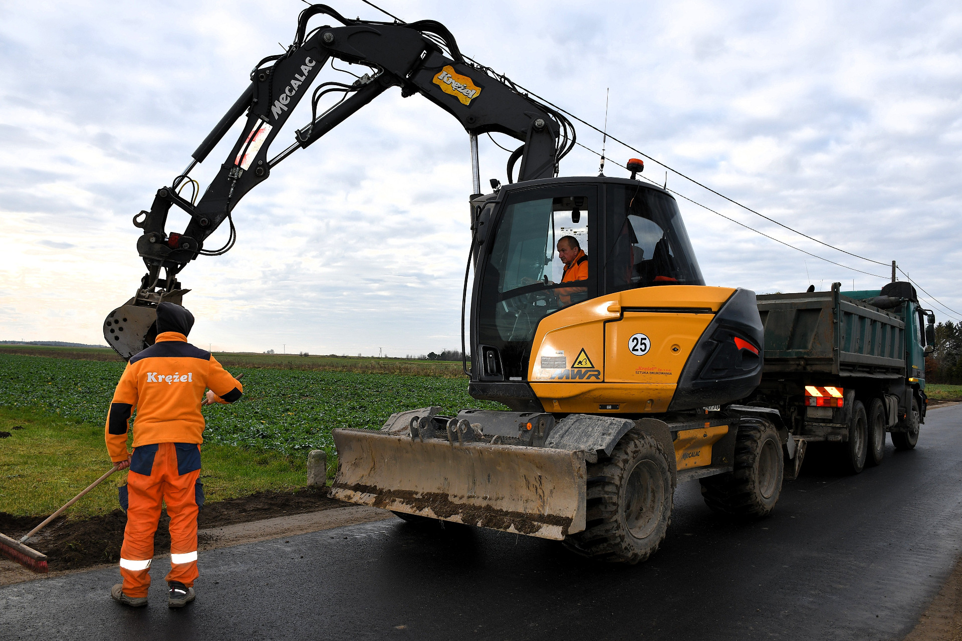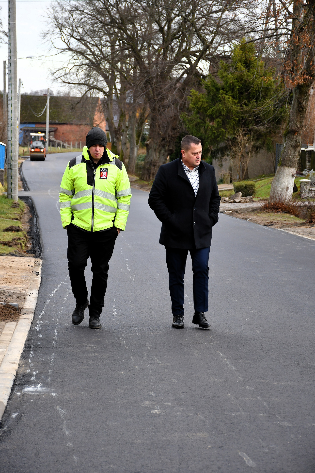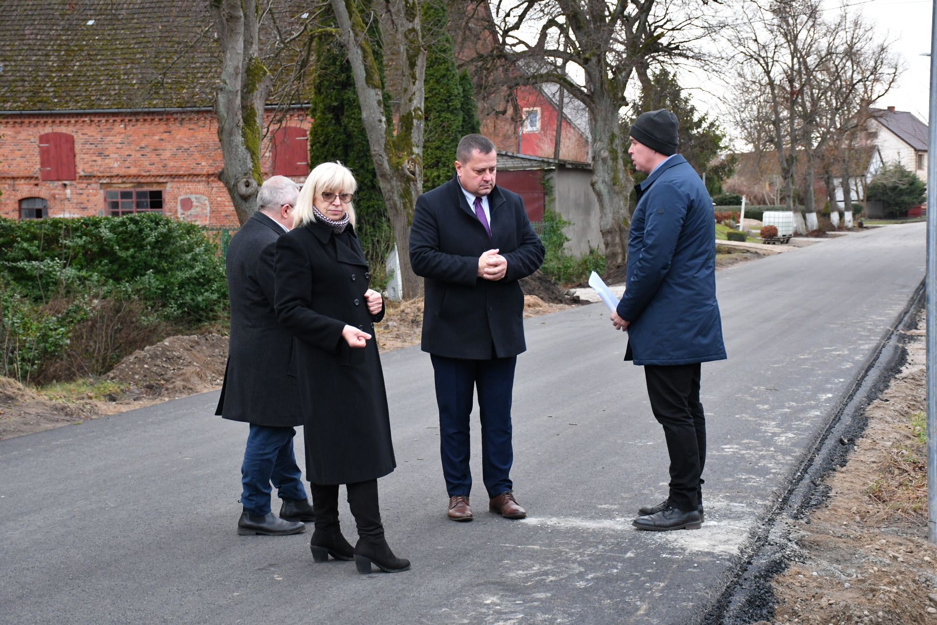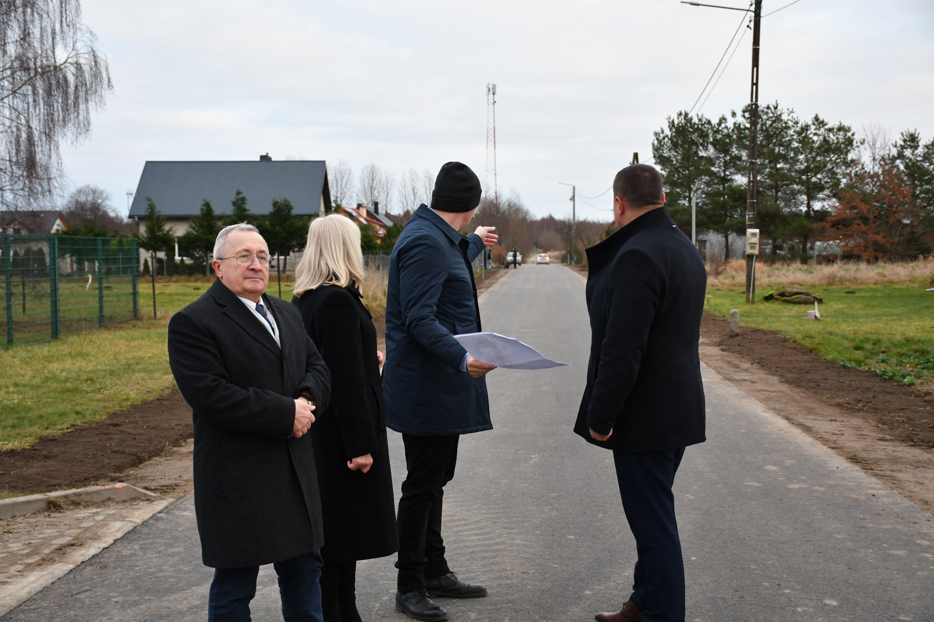 Druga inwestycja to przebudowa drogi gminnej nr 170022Z na działce nr 262, o długości 321 metrów. W ramach prac usuwana jest stara nawierzchnia z bruku i kruszywa, wykonywana jest nowa konstrukcja drogi z asfaltu, a na zjazdach oraz progach zwalniających układana jest kostka brukowa z kamienia, co podnosi zarówno trwałość, jak i estetykę tej części miejscowości.