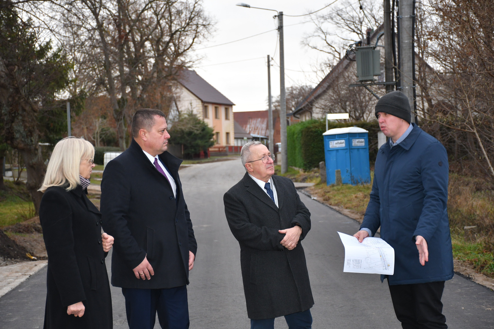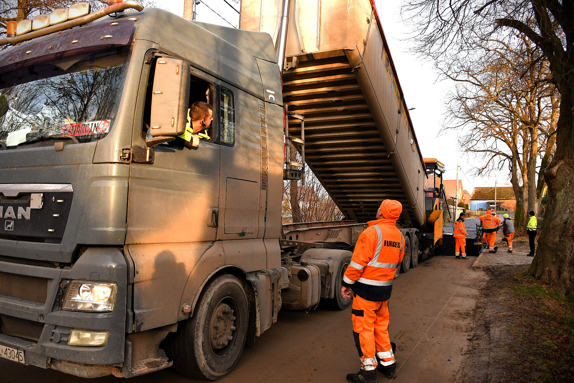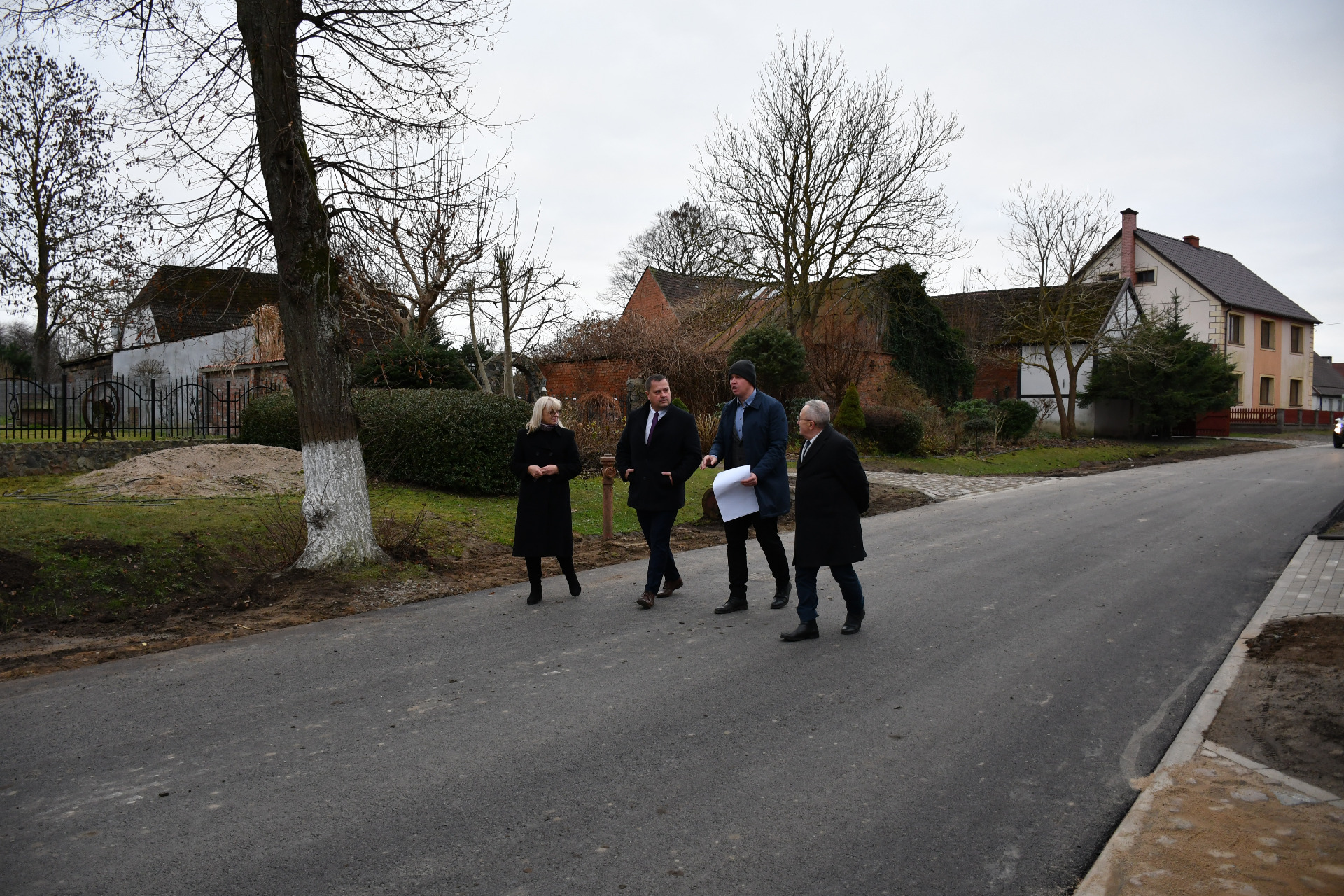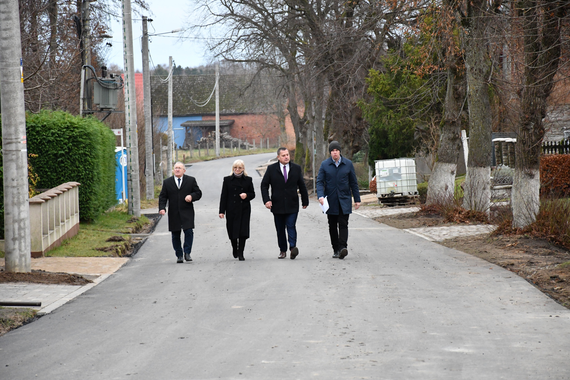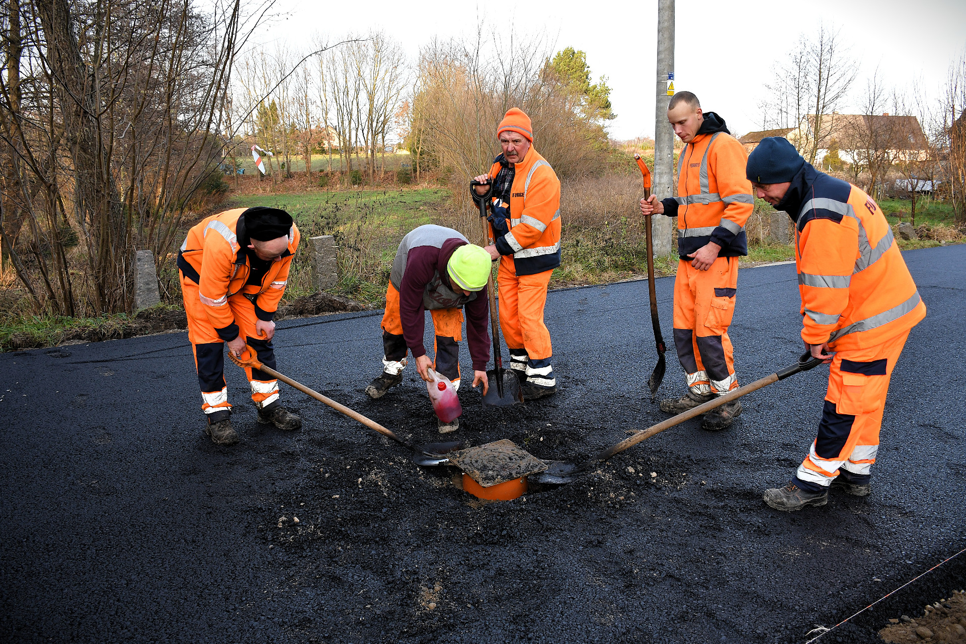 Druga inwestycja to przebudowa drogi gminnej nr 170022Z na działce nr 262, o długości 321 metrów. W ramach prac usuwana jest stara nawierzchnia z bruku i kruszywa, wykonywana jest nowa konstrukcja drogi z asfaltu, a na zjazdach oraz progach zwalniających układana jest kostka brukowa z kamienia, co podnosi zarówno trwałość, jak i estetykę tej części miejscowości.