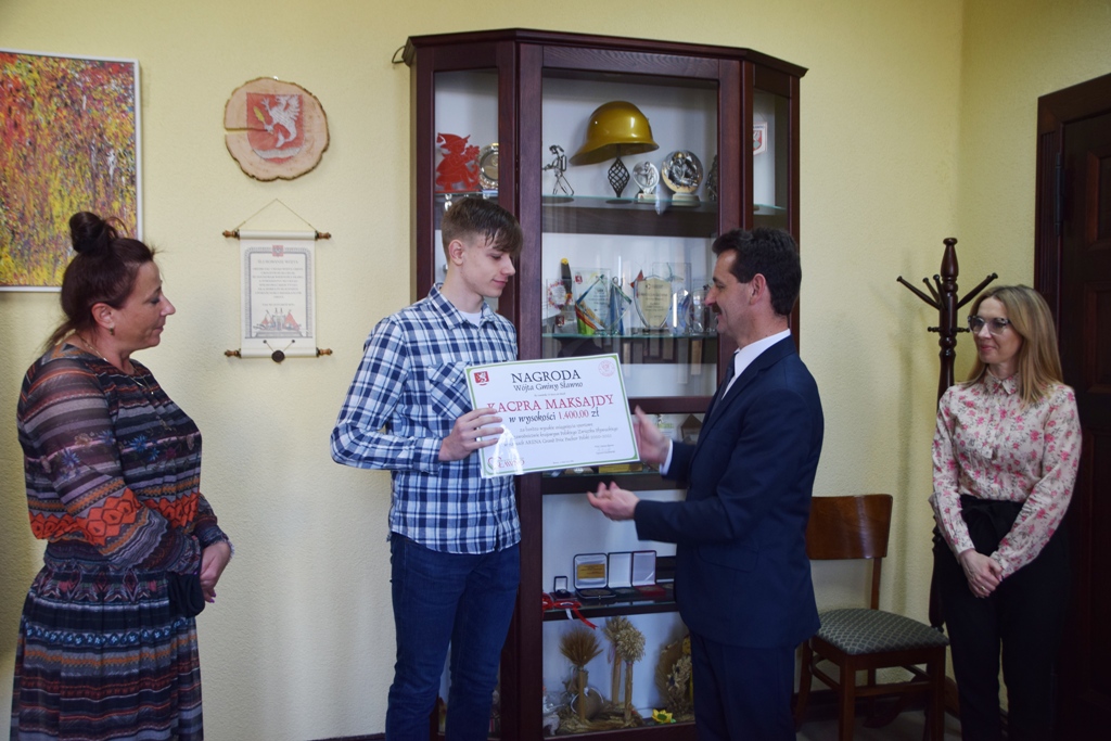 W dniu 11 maja 2021 r. Wójt Gminy Sławno Ryszard Stachowiak symbolicznie przekazał nagrodę za osiągnięcia sportowe dla Kacpra Maksajdy z Warszkowa. W spotkaniu uczestniczyła także mama zawodnika – pani Danuta oraz Anna Jaszczyk – z-ca Skarbnika.