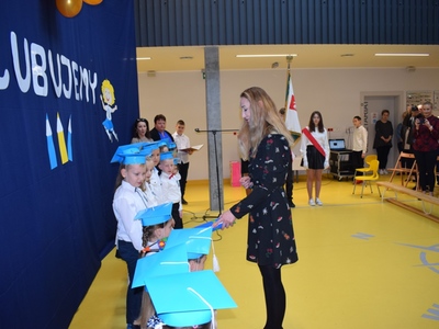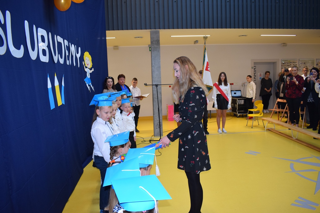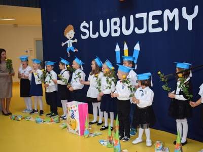 Po pasowaniu dzieci oficjalnie zostały przyjęte w poczet uczniów szkoły i otrzymując legitymacje szkolną stały się pełnoprawnymi członkami naszej społeczności.