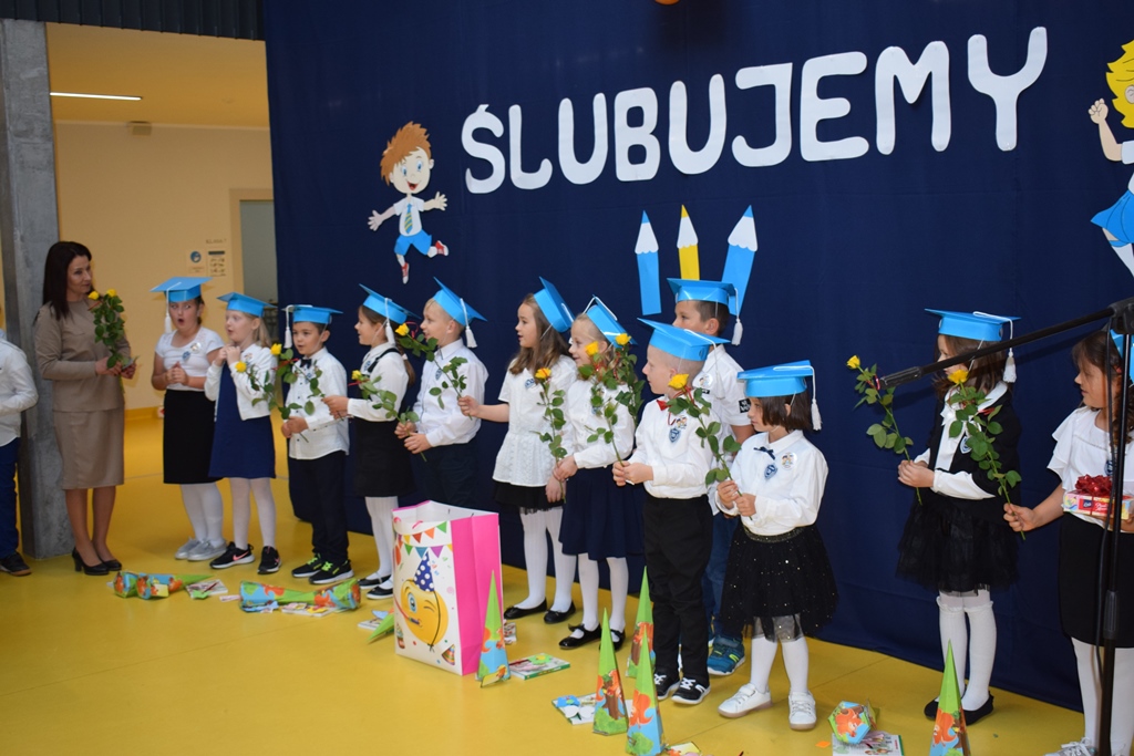 Kochane Pierwszaki! Cieszymy się, że jesteście już uczniami i życzymy Wam sukcesów w nauce. Powodzenia!