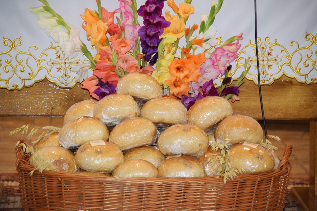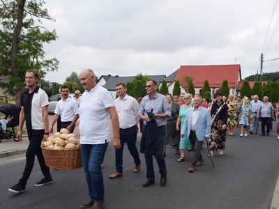 „Żniwne” pieśni wyśpiewały „Wrześniczanki” z Wrześnicy, a sołtys Noskowa – Stanisław Motykowski powitał wszystkich gości, dzieląc pomiędzy nich poświęcone bochny chleba, wypieczonego z tegorocznych zbiorów.