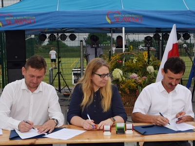 Następnie Wójt Gminy Sławno Ryszard Stachowiak w kilku słowach opowiedział o procesie rewitalizacji Noskowa. Zgodnie ze wcześniejszymi zapowiedziami podpisano też umowę o dofinasowanie kolejnego projektu.