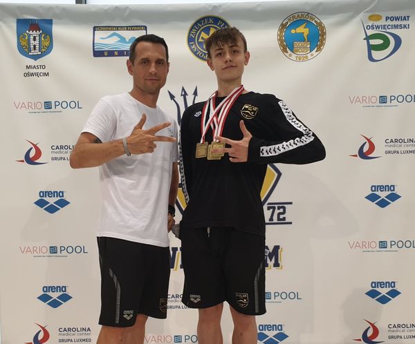 Podczas Mistrzostw Kacper zdobył aż trzy złote medale na 50, 100 i 200 metrów stylem klasycznym.